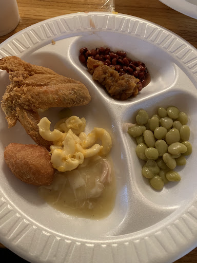 Read moreClean, quiet, good Southern barbecue and chicken( fried and barbecued), with all the trimmings except for hush puppies, rolls, and cornbread. The tea was fresh and cold - very good. The only bread were slices of loaf bread in a sort of cookie display container that one opens and uses tongs to retrieve a slice or 2. It is a buffet - self serve. The line can get pretty long but it moves along smoothly and fairly quickly. The waitresses are on the move constantly- refilling cups, and taking orders from the menu, and serving. The chicken is delicious- some of the best. Hubby had the chopped barbecue . He said it was very good. There are various sauces on the tables if you need to use some. There was one tv and it was on a sports channel. It was not distracting though😊. We sat at the only small table available and it was a little wobbly but tolerable. One of the servers could tell this was our first visit and she was very kind about letting us know where everything was and the normal procedure. There were various desserts- I had some of the cherry cheesecake and hubby had the banana pudding. Both were very good. The waitress said I could take out my small piece of chicken I had left over without any problem. The slaw was delicious too. There was no salad. So come prepared to eat Southern country. Also there were pickles that were so good. Corn on the cob, Lima beans, green beans cabbage- Mac and cheese, baked...