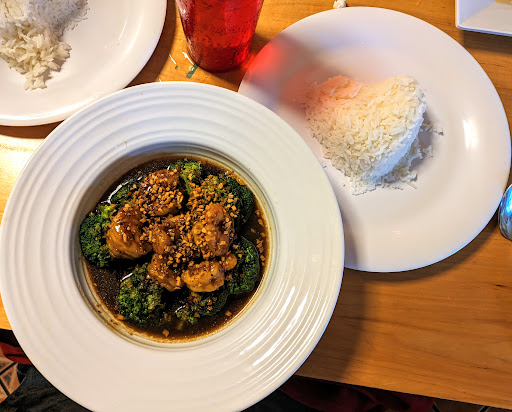 Our friend ordered Basil Chicken, which is spicy & she is used to eating. When it arrived, her meal had only 2 very small pieces of basil in it, which was not what she was used to. So she asked for some more & an untrimmed 3"-4" piece of stem on a saucer was dropped off on our table as the server quickly walked past us. Our friend had also asked that the spice be slightly reduced, but it was almost too spicy for even her to eat &, trust me, she really likes spicy foods!