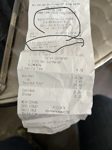 Read moreI went to the store. I ordered a kids meal with a cheeseburger with extra fries instead of the apple slices and two cheeseburgers with two ice cream cones and then all of a sudden I get home I look in the bag and there is a fry and it was cold to the touch with two cheeseburgers. I didn’t get a drink which I didn’t order one and all of a sudden I call them and they’re rude at the window and then they’re rude on the phone. The ladies telling me to return the food when the order was completely messed up on only one item and when I looked at the receipt, it is now saying that I ordered a corner cheeseburger deluxe meal with a large Diet Coke and that I did not order that if you looked at the other picture I am I had it with the receipt. It only shows I had two sandwiches and a fry with no drink. And the kid at the window kept messing up my order even when I drove up and had him at the window face-to-face he still messed it up but warning I want to go to this McDonald’s ever again due to the fact that they do not trust you enough to even when you go back and tell them they messed it up. They want you to come back to the store ASAP And waste your gas over the fact that you didn’t even get the large Diet Coke and in the very beginning, you didn’t order any meal you ordered two cheeseburgers warning do not go to this McDonald’s. They don’t care if they mess up. And I would’ve gave...