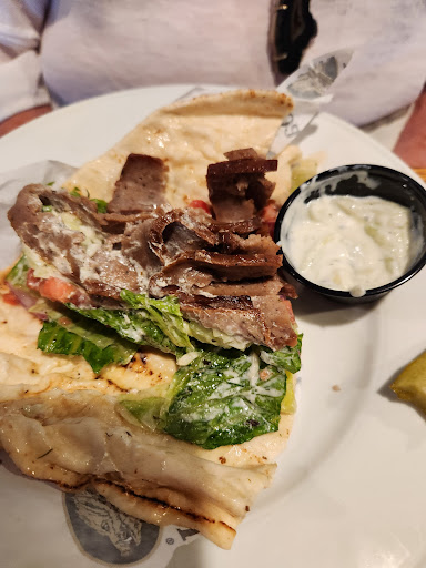 The food was underwhelming, to say the least. Hubs got the Philly Steak sandwich ($11) with fries ($4). When his order came out to our table, the fries were cold, soaked in congealed grease, looked & tasted a week old, & should have NEVER been plated up in the kitchen! His sandwich was a hot mess... oozing grease & some kind of yellow-orange mystery cheese that looked like CheeseWhiz... but he said it tasted fine. The waitress was very apologetic & said she'd bring fresh fries asap. Our friend got the Original Gyro ($10), which was practically dry except for a heavy dousing of raw olive oil instead of the usual Gyro tzatziki sauce, & had 7 short strips of meat all on one end of the sandwich. Our friend said the meat, which she ate with her fork, was tasty. I ordered the OliveTree Special Shawarma ($11), which was supposedly marinated & slow roasted steak in a pita wrap... the menu touted it as "HUGE" (not!). It had maybe one oz of rather tough shredded meat, all on one end of the sandwich. I've had much better steak chalupas at Taco Bell & for much less money, actually. We decided not to risk getting any dessert.
