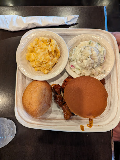My daughter, Olivia & I found this lovely restaurant around the corner after her doctors appointment today. I ordered the special, Salisbury steak with mashed potatoes & gravy, & Mac & Cheese : My daughter, Olivia, ordered the 3 meat dinner with fried chicken, ribs, & brisket sides: mac & cheese, mashed potatoes & gravy, she also added a side of cabbage. We had rolls and pop. Olivia also ordered her a slice of sweet potato pie cheesecake to bring home. I thought Olivia was going to float out of her seat she enjoyed her meal so much! 👩🍳🎉❤ She graduated from Escoffier Culinary Arts School back in the Spring Class of 2021 and is a food connoisseur. If she likes a restaurants food we are not used to having, believe me, that restaurants food is delicious. My food was delicious to me also, but I would do the mashed potatoes a little differently. A little dry for me...but that doesn't mean I do not give the restaurant 5 stars! There have to be other things besides food. Customer Service...How you greet and treat your customers....that is if you want them to come back....I highly enjoyed my experience with everyone we came in contact working at the restaurant and they alone make me want to go back! We love the attitude and the family feeling in the restaurant. We also got take out to bring home to my husband. He said it was very good. He would change the cornbread, it was little dry, and the Salisbury steak needed more onion in it. I can't wait to come back and try something different! I am so glad we found your place today! We will all come back as soon as possible and I am sharing you restaurant on my Facebook & Instagram page to all my friends so they will come visit you also.... The Johnson family... David,...