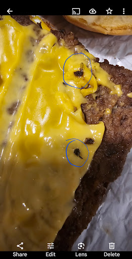 Since corporate has yet to respond, I'd prefer to get this out there so everyone can see. I didn't want to give the service 1 star, because the employees are generally decent to talk to and service isn't bad. We've eaten here for years, but Tuesday will be the last day. We got a chicken sandwich that we had to return. The chicken was very tough and my wife couldn't even bite through it. I tore it apart to find it brown and crusty inside. I returned it for something else and even the manager said "ew, I'm going to take a picture of that." I assume he sent it to their quality control. We got a burger in return and, when i got home, my wife took the bun off and said, "does that look like a leg that just fell out?" (See the images). I'm always skeptical but I couldn't deny it. I asked where it was and she pointed to the cheese on the side. We lifted the cheese to find a body with wings attached baked into the cheese and the head of some type of insect beside it. No thanks wendys. It's pretty sad in 2-3 days, I still hear nothing in return. I emailed both compliance and...