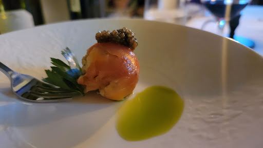 Read moreAfter dreaming about coming here for a while, I was squealing with joy when my husband made reservations last night. We arrived a little before 7pm and after a quick COVID 19 screening, we were taken to our seat. A pop of a wine cork, and our night began. The atmosphere is warm and cozy. The menu is completely in french, but Chef Martin visited our table to answer any questions we may have had. Then the feast COMMENCED. Our eight course meal included an appertif of smoked salmon, which normally I would pass on, but LOVED. Asparagus soup, that I could not stop slurping. Also cheddar puff pastries, a bean and beet salad, poached pike with crusty pastries and spinach topped with a creamy dill sauce, beef filet with madagascar green peppercorn sauce, and roasted sweet onions and tomatoes that were so tender, their skin was the only thing holding it together. We then finished with a light-as-air Grand Marnier Souffle with an english cream drizzle, coffee and tea, and delicious petit truffles, alongside cookies and candies to savor as you wrap up your evening. We loved our visit so much, and can't wait to make future visits and memories, while enjoying the best meals...