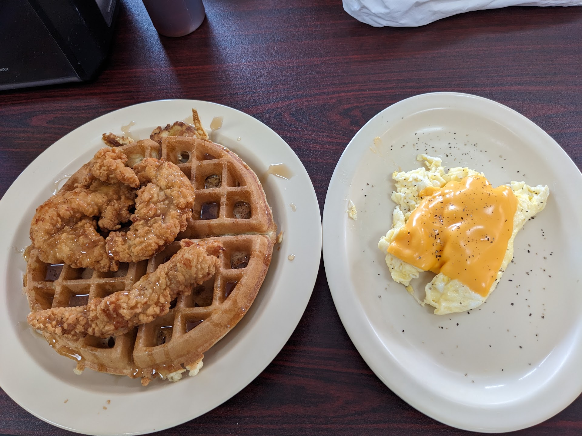 I had the Mexican omelette, my boyfriend had the Santa Fe omelette. They both were homemade quality good. The cook was making everything there fresh and it was still fast. Unlike most places with eggs, everything was seasoned perfectly. The hash browns with the omelettes were just the right level of crispy and biscuits tasted amazing and were clearly homemade. They also had a slight crispiness to them, which I think is because they put them on the griddle for a minute, which somehow made them a million times better!