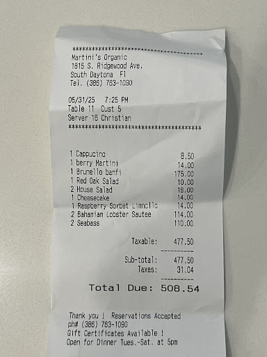 Read moreFirst the garden draws you in, and then Mr. Martini (cat) greets you. The warm candlelit atmosphere makes you feel like you’re in an intimate location. My table of four was tucked back in the corner which seemed very private. Our cocktails and conversation were priceless. Next came the caprese salad, red oak salad, Caesar salad, and the yummy seasonal butternut bisque soup. All four dinners were spectacular! My husband ate the Delmonico steak which was plentiful and delicious. The rest of us dined on seafood specialties which were amazing! (Lobster sautéed & shrimp & scallops over linguine) Finally, it was dessert time! Nothing can beat the chocolate torte! As you can see, I was very pleased with the atmosphere and overall dining experience. Martini’s is not by any means a cheap restaurant, but to this reviewer it...