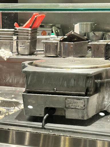 The food is not keep warm, sautéed vegetables are over cooked and soggy, meat is overcooked with too much seasoning, brown and white rice is hard, beans have a crust over the top, cold burritos shells are slapped onto a dirty counter, cheese is clumped together, and lettuce dirty and rotten.