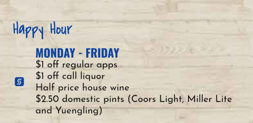 Always friendly staff. Mostly normal bar food but with a great chefs specials menu which is really interesting. Good, but small, wine last. Generally a great spot for dinner. Had an absolutely great meal between the chicken marsala and penne vodka.