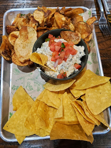 The food was also excellent. Everything we tried was well seasoned and very tasty. It started with the house cheese dip. It had some spice to it which was nice. You could see and taste the veggie chunks in it. While we did not find any hints of bacon, it was still excellent and was especially good with the house made potato and tortilla chips. We also got their mushroom burger, chicken sandwich and then the cole slaw and daily vegetables as the sides. All of those were also seasoned and cooked well and were delicious. A humorous note: When we saw one of the waiters bringing us the two sandwiches, I thought they got our order wrong! The chicken sandwich looked like one of those huge fish fry sandwiches you get during Lent!!! It was only after biting into it that it became obvious that it truly was a chicken sandwich! It was very tasty and cooked well – as was the burger. We rolled out of the place stuffed to the gills and with leftovers!