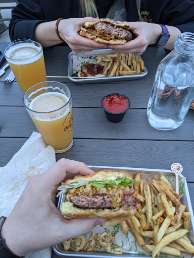 Burgers:(bbq) overly cooked to the point of removing the burned pieces, and the bread became soggy from the grease. (trail) the onion straws were the store bought things and overall didn't do the burger much service. (both) burgers lacked any real seasoning to the meat and in turn made this burger not worth the price point.