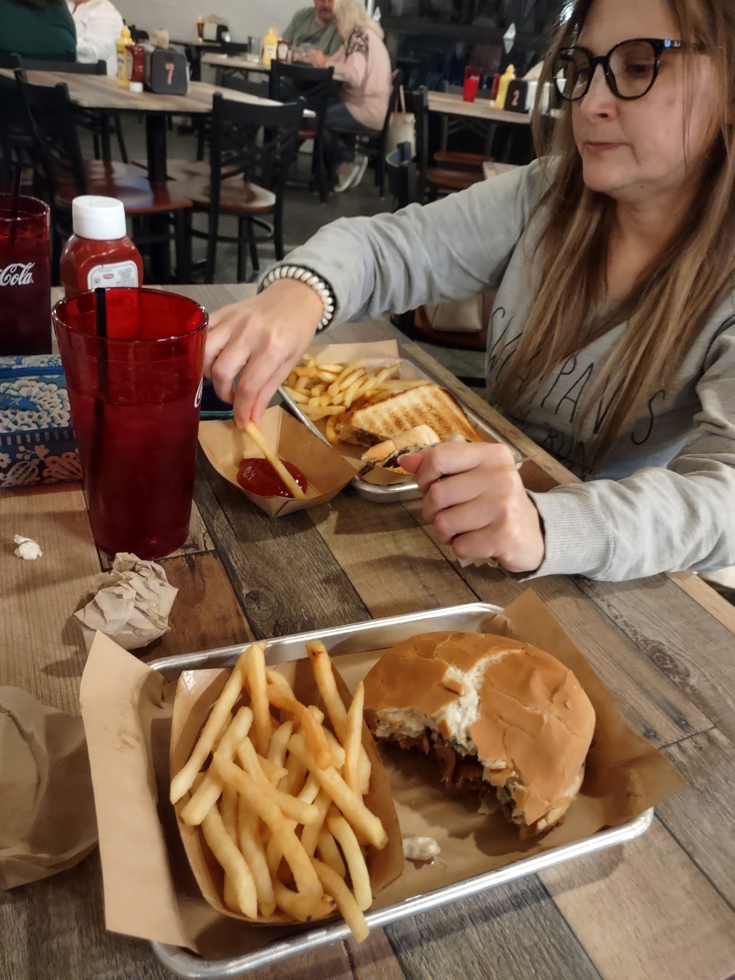 Read moreThis place has a lot of potential. The service was decent after we finally got waited on. Seat yourself and the tables were dirty. The wait staff walked right past us numerous times without acknowledging us. We could see them arguing about who was supposed to cover our table. We ordered appetizers and they came out at the same time our food did. The cheese sticks and potatoe skins were pretty good. I would not recommend the redneck charcuterie. The sausage was just precooked sausage (like hillshire farm) that was uncooked and served cold (like straight out the refrigerator cold), the cheese was precut cubed cheese out of a bag. The BBQ bologna and pinto cheese were pretty good. The burgers were mediocre decent burgers. I ordered the BBQ bacon burger, and it barely had any BBQ sauce on it and 2 of the smallest onion rings I have even seen. They were also out of several items ex. Mellow Yellow, fried pickles. They had someone singing while we there and he was pretty good but the music was entirely to loud for lunch...