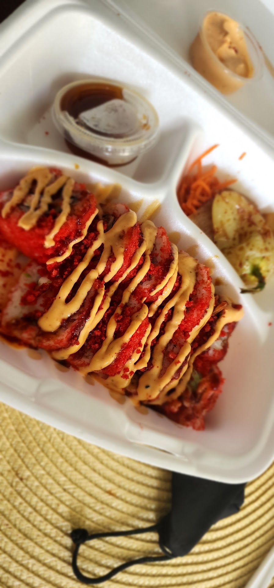 Read moreQuick bite ended up trying this wonderful place right around the corner from the pad. Serving Mexican food along with great tasting sushi. The place was clean and was acknowledged as soon as I walked up to the register. I went ahead and got a crunch roll, hot cheetos crunchy roll, and the criminal roll. All 3 rolls were really great in taste, portion, and the price was worth it. Ok first the crunch roll inside has cream cheese, avocado, shrimp tempura, cucumber, and imitation crab. Outside crunchy flakes, salsa anguila, and spicy mayo. It's really crunchy, great tasting ingredients, really like the salsa anguila, delicious! The hot cheeto crunchy roll was my favorite, the same ingredients as the crunch roll, but they substitute crunch flakes for hot cheeto flakes on the top of the roll really has a hot cheetos tastes but does not overpower any of the other ingredients, it goes really well with everything. Last but not least, criminal roll, this is a shrimp lover roll because has lots of shrimp. Inside contains shrimp, cream cheese, avocado, and cucumbers. Outside contains chopped shrimp, more cream cheese, salsa anguila, and spicy mayo. Really good portion of shrimp, really creamy with cream cheese inside, and out. Everything is well balanced. Everything I got tasted amazing. Service is good, place is kept clean, would recommend, will be back to try more...