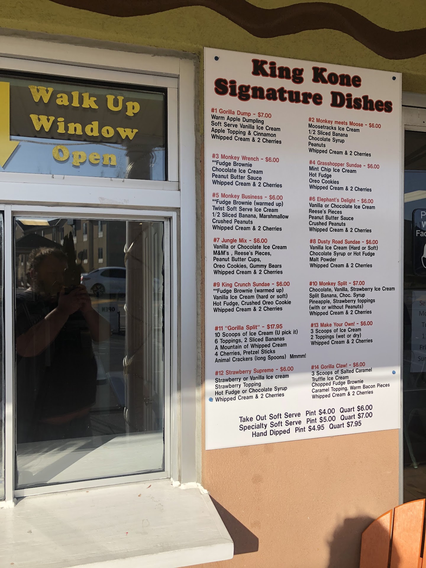 Read moreHonestly they sucked, plain and simple. I was second in line at drive-thru and it took 25 minutes and me going inside the store and telling them that I had been waiting a ridiculous amount of time for them to take our order. Then after 25 minutes and me talking to them we got to the speaker and they said that they don't have vanilla soft serve (the base for all soft serve flavors but chocolate and German chocolate). I work at a Dairy Queen (I've worked there for a year, through summer) and we have never have run out of ice cream. When we have lines out the door (inside the store) and lines to the road at drive-thru we don't run out of ice cream, because as an ice cream and soft serve shop you can't just run out of ice cream. Look at the forecast for the weather to see what the weather is going to be. The weather is not much of a surprise in this age of technology so you should plain ahead for that. Overall this trip wasted 25 minutes of my time, so I would not reccomend King...