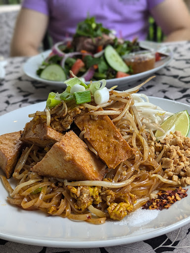 I was out on a cycling trip with 3 other friends and came across this restaurant around lunch time, so we decided to stop. We made our way to the terrace in the back of the restaurant and were greeted by the friendliest and most welcoming waitress. We were served by 2 people during our sitting and they were extremely polite and helpful. We each started with a beer, which the waitress proudly told us that they keep their glasses in the freezer to make the beers extra cold. It was like having a beer at the most ideally perfect moment. The beer was absolutely delicious. We ordered spring rolls before our meals and they were amazing. For our main course, I had a tofu Pad Thai, and my friends had the Chicken Pad Thai, the Low Mein, and Duck. We all agreed that our dishes were exceptionally good. Our entire experience was perfect and I highly recommend Victoria's Cafe!