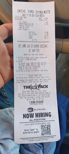 Read moreReceived sub-par food and service at this location. And I really like a few items on JITB menu. After seeing past reviews as well, it seems the owner hasn't taken reviews serious. It seems the owner just responds to the reviewer that "You" the customer, should always receive the best food and service. It's a no brainer. It starts at the drive thru and then the food and service you receive at the window. Treat customers with respect and serve good hot quality food. That's it! The Drive-thru started with a prerecorded message asking if you would like to try the special then is interrupted by the real attendant to take your order. She either didn't listen or didn't understand what you were saying. Made me repeat it several times louder and had an additude when asked to repeat the order to make sure she got it right. Then you drive thru a tight squeeze drive thru, that has been the same for like over 20yrs, trying to avoid getting your truck scratched up. Then the window service. You get smaller sized breakfast sandwiches for the price now and they can't even get quality of that out the window. Check out the hash brown I got in my bag. It was so crisp that when I took a bite it literally crumbled into pieces. If you can't do better than that, then maybe you should spend the money to fix and widen the drive-thru. Geez. So past up this location and go to Jack's other place up the street....