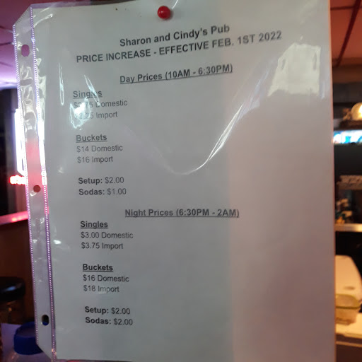 Sharon and Cindy is the place to go,every one knows each other,we are one happy family. Always food when football on, great DJ, Mr. Derek all that and a bag of chips and then some , he plays good oldies, txmex, rap, and his a great dancer and Ms. Jan the best bartender ever , nice lady always take the time to greet everyone and day good bye. SC also have the cheapest prizes to drink, and licgor is welcome too, smoking. Like I said...