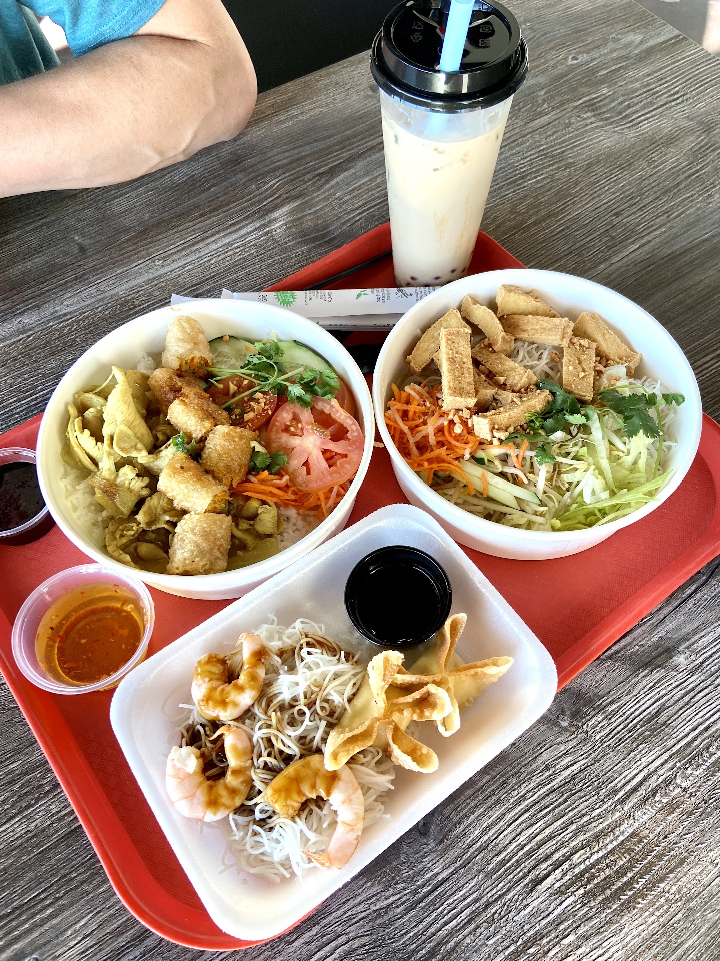 It was okay, but not overly impressive for my first visit. Clean dining area, plenty of seating for when I went at lunch time. I just asked for the "best thing on the menu", and they selected the large Beef Combo Pho and Winter Melon Milk Tea. It took longer to get my order than I would have expected, but being my first time there I'm not sure what I should have expected. The pho was enormous, too much for one sitting and I probably would order the small next time. I liked the brisket beef, but did not care for the meatballs - they had a weird texture. I wish the broth was more flavorful and served hotter, it was almost lukewarm. But the noodles were good, and the basil and sprouts were fresh and delicious. The Boba Tea was really good, very flavorful and refreshing. All in all I felt like the cost for value was a little high, but it was ok. Wouldn't be my first choice, as there are 3-4 other restaurants nearby I think I will stick with in the future. However, if they ever added Pad Thai to the menu, that might bump it up to...