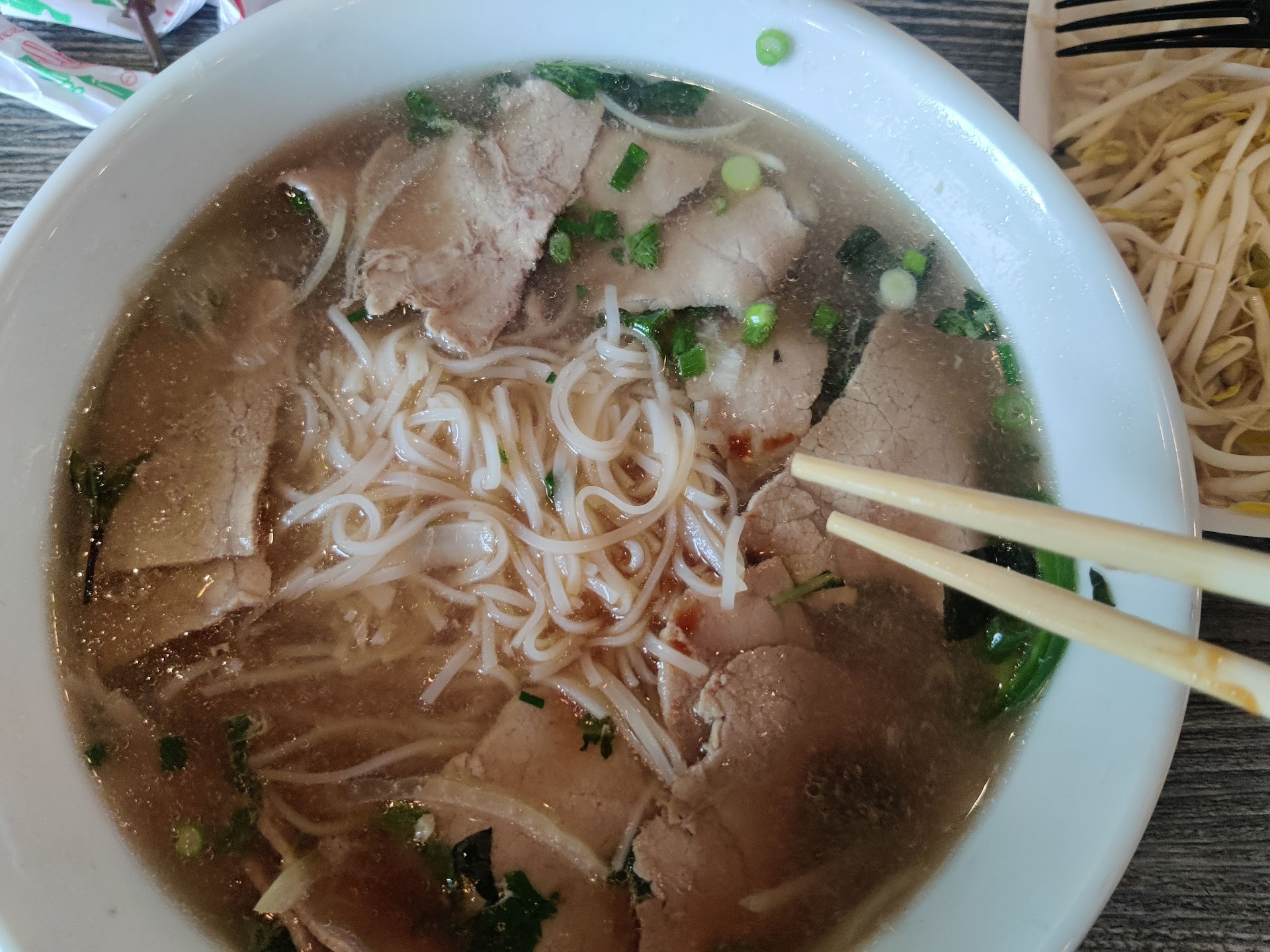 Read moreWe tried this place out because the nearby Indian place is closed on Sunday. I had been to the one located in Lehi. Like most of the other reviews I feel like this place is overpriced for what it is. It is priced the same as my usual pho place (Pho Bien Hoa), but it isn't as good. Overall it is pho, which is good, but the noodles were skinnier than I usually get, they were also a little mushy. The broth tasted was flavorful, but tasted like it was from a packet and the usual spices in pho were toned down. Also it was not very clear like a traditional pho broth. The place comes across a little cheap with plastic spoons and disposable trays for the toppings, but you get a real bowl. The spoons are particularly thin and felt like I was going to cut my lips. The bean sprouts also tasted old. I like the idea of fast casual Pho, bit this place did not live up to my...