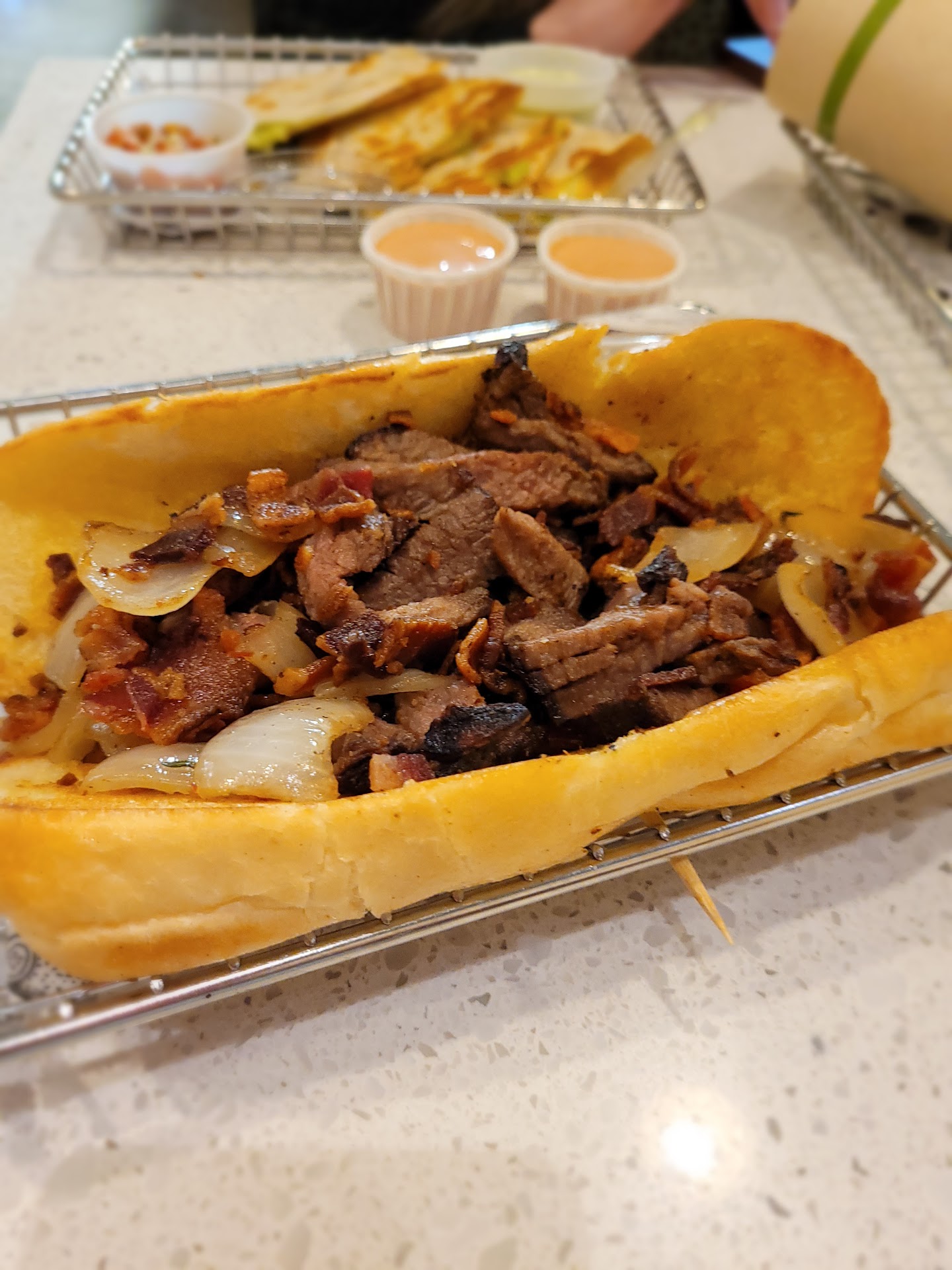 My favorite sandwich there is the steak sandwich and comes with great grilled onion and crispy bacon. The roll is soft, the steak is very tender and cooked really well. I like the bbq sauces on the side as it can overpower what's inside at times, I recommend doing the same! But again, salt and pepper is just not there, making the quality meat stand alone instead of bringing out even more flavor. Quick and cheap fix that will push this sandwich past the rest! 👍