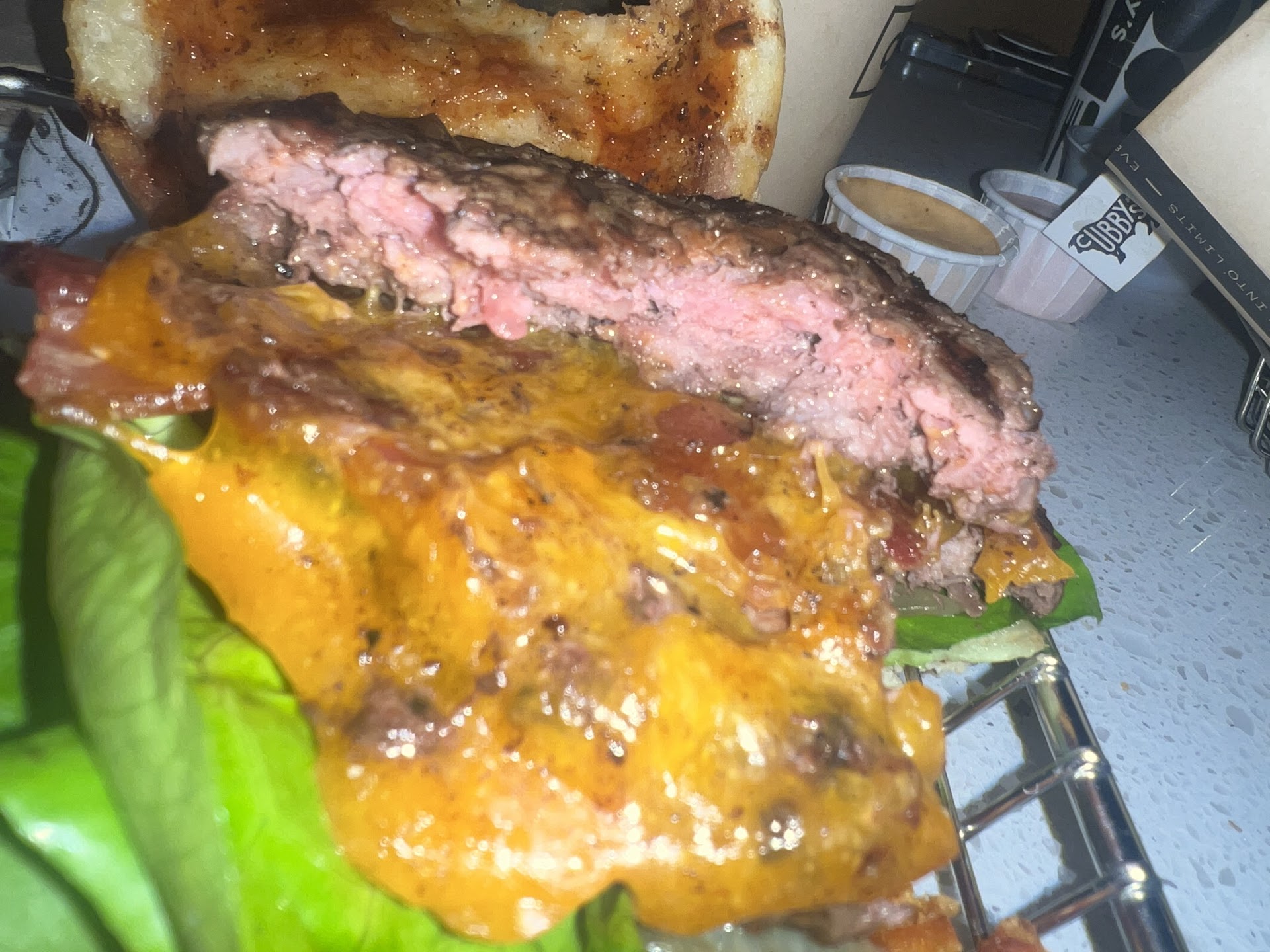 Read moreWednesday night my wife and I visited this Cubby's location. At the time of our visit there were easily more employees working than there were customers. We placed our order and sat down and waited. 3-4 customers followed us. I ordered a burger and my wife ordered a salad. After waiting 10 minutes, the two customers who ordered after us were given their food, both burgers - one a double. After being there 15 minutes the third customer behind us was called up to get his burger so I inquired as to when ours would be ready. I was told that they were waiting for the burger - which surprised me because 3 orders for burgers were provided before mine. I then simply asked for a refund so we could get on our way. Employees started yelling "Free Food". I said I don't want free food, I just wanted a refund. Two more minutes passed and I was finally given my order. We drove to another location to eat and when I opened my burger there was an enormous amount of white gooey sauce leaking out all over the bun. There was easily 1/2 cup of this sauce - so much so that I couldn't even find the patty. Needless to say I didn't eat this disgusting burger. I've never had an issue at any other Cubby's location. This location in South Jordan is the worst. As a side note, my wife got the Tri-Tip Salad and most of the meat was nothing but gristle and the tomatoes were...