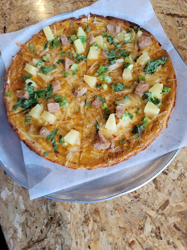 Really really awesome! I'd highly recommend this place. If you love Indian food or even flavors you need to try this place! We got here with our daughter and her husband and found out one of my husband's old friends owns this place! What? Ok here is my tip for you.... do not under any circumstance try to make a regular ol pizza. It will not work. That's not what this place is. Just trust the process and pick one and go with it. Also, they have vegan options which is huge. AND..... the cauliflower pizza crust is truly amazing. You cannot tell a difference from the Naan. (The Naan and vegan Naan are also amazing!) My son in law got the butter chicken and said it was amazing. My daughter got the mango korma pizza and also said it was really good. We got the the cheese Naan and garlic Naan which were amazing! The garlic Naan was delicious. I'd eat just that. My husband got the mango korma as well vegan style which was seriously amazing! They have a fake chicken, ficken (that's what we call it) and it is a good sub. The flavor is so good. I did the lame thing and made a regular pizza and it was not nearly as good. I did a build your own with marinara, spinach, green peppers, pineapple, sun dried tomatoes and mushrooms. Not great. It was fine but trust me when I say.... get a specialty curry pizza! They will actually let you sub something, they are all so nice there! And then! Bhinda made us his pizza. Ok. If you like heat, this is the pizza for you. The flavors are so complex but you can taste them all, the spice doesn't hit you right away and then BAM! There it is. If you need help getting through this just order a Lassi it will help with the heat. Both flavors are great!