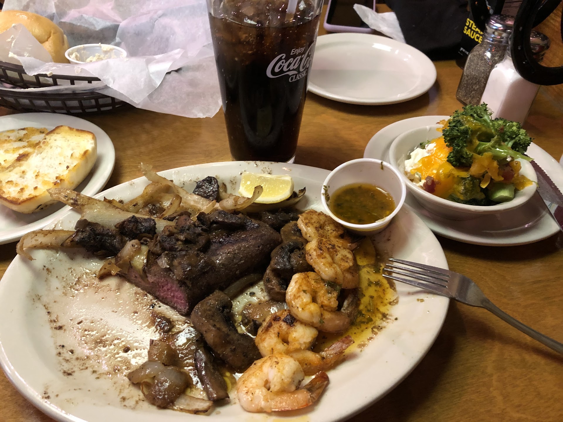 The blooming onion was, per usual, overcooked, dad's steak was overcooked and tough, while my husband and I seemed to fare better and had excellent steaks. I brought about 90% of my food home to eat where I could enjoy it in the warmth.