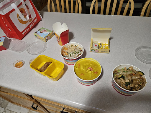 Read moreWe decided to do a progressive dinner for date night tonight and one stop was Thai Better. The four of us shared a Tom Yum and a Drunken Noodles and each couple shared a mini mango sticky rice. The Tom Yum was really good for a tomato-based soup. I don’t love tomato soups. 🤷🏼♀️ But with the rice it worked and had great flavor. The Drunken Noodles tasted a little bland in comparison but I like noodles so I enjoyed my share. The veggies were yum. The highlight of the visit was the mango sticky rice. We were all surprised when it came out because the rice was warm. The sauce was delicious and the mangoes added a little bit more flavor. It reminded me of a peach pie. I’d go back for that alone but we’re excited to try to Tom Kha (coconut version of the tomato soup) and massaman curry. The decor is interesting - a strange little baby-ish cartoon character in all the pictures. But the plastic forks and to go bags were all branded in such a cute way that I overlooked the baby. We figure it must be a chain somewhere else. It’s a little on the spendy side @ $12 per plate but that seems to be just the way of things here in SLC. All in all I’d recommend this place for a fast casual Thai food place. And if you go tomorrow remember to wish the friendly lady cashier a happy...