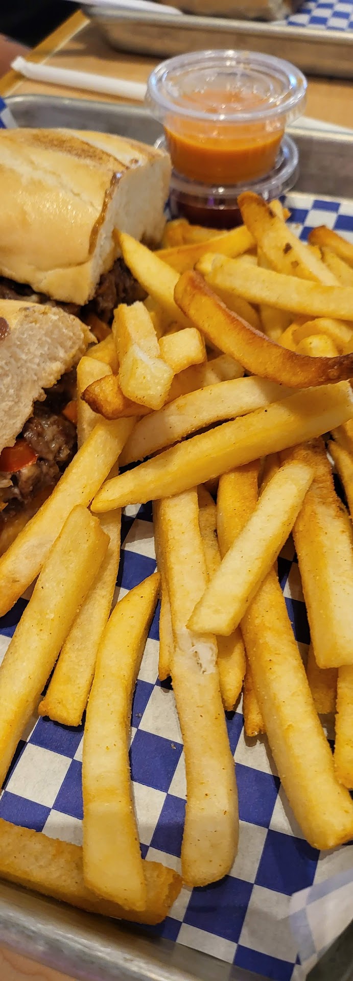 Additionally, they will bring your food to you, but beyond that there is no one checking to see how it is or see if you'd like a refill (the soda machine is in the kitchen). My husband wanted to salt his fries but there were no salt and pepper shakers at the table; he had to get up and go find them as there were only two sets in the store. We were the only guests at the time we were there; this wasn't a busy time.
