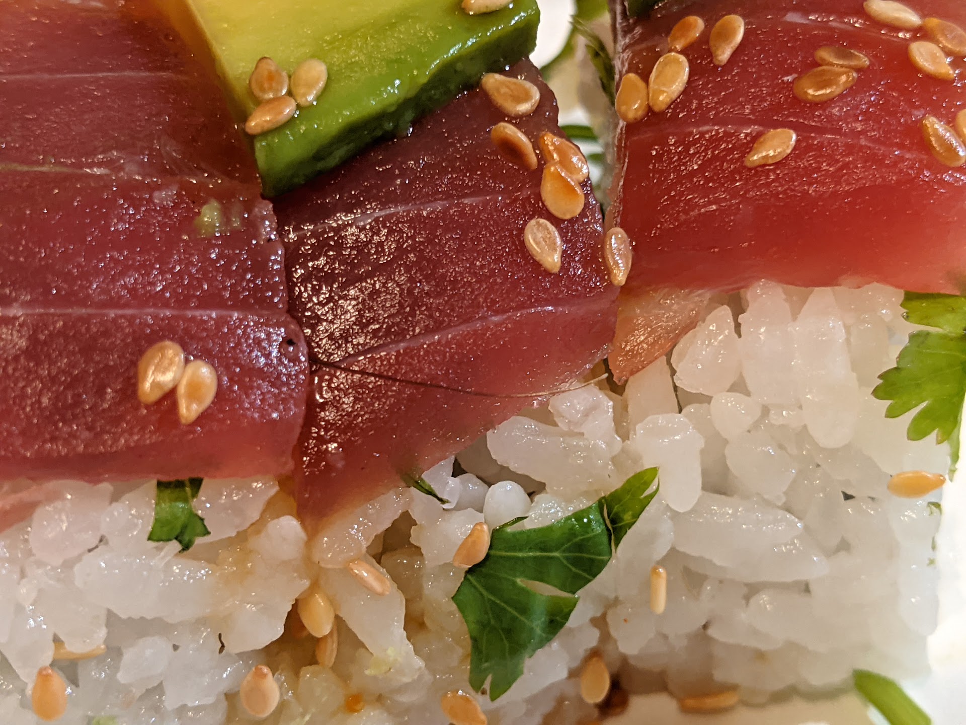 Next, we moved on to the sushi, which could only be described as the sushi equivalent of a red carpet event. The roll looked so perfect I almost felt bad eating it... almost. But then, I took a bite, and all those feelings of guilt went out the window. This sushi roll had layers of flavor that unraveled like a plot twist in a telenovela.