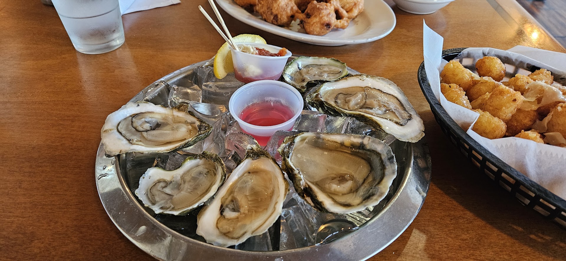 My party ordered their Fishermen's platter. A large dish with a fried fish fillet, fried full bellied clams, fried shrimp, and fried scallops. The full bellied clams were the only salvageable item in the group. The fried fish was soggy. The shrimp was tough as leather. The scallops were so clearly frozen it was unbelievable. Completely watery and chewy.