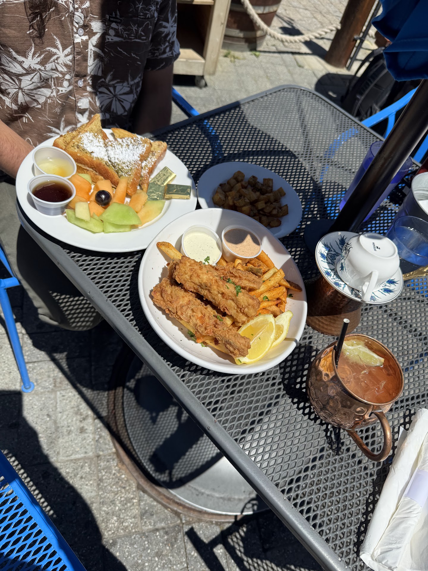 11:55 AM – 12:19 PM: Our food was served, and everything was delicious. I highly recommend the Mahi-Mahi Fish & Chips and the Baklava French Toast—absolutely the highlight of our day! As Middle Eastern diners, we found the Turkish coffee not entirely authentic, but still very enjoyable—tasty enough that we finished every sip.