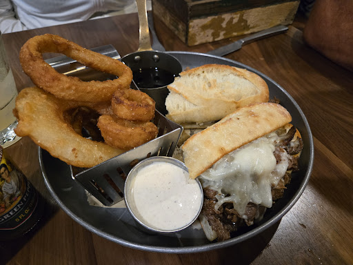 Blackberry Sage Martini - Delicious, addicting! Could be heavier on the sage, I barely tasted it at all. Still, I'll take three more! Cheese Curds- good. I mean, fried cheese, crunchy breading, how can you go wrong? But the cajun ranch needs more cajun seasoning. Smash Burger - EXCELLENT, no notes. Oh wait, one. Advertise that it's wagyu on the menu! I had to ask for pickles, which were crunchy and delicious. Fries - Meh, fine. Standard shoestring fries. Fish & Chips - Needs improvement on execution. The cod itself was excellent, but the breading slipped right off and there was a puddle of oil on the plate. My guest had to ask for lemons, malt vinegar, and was disappointed by the tiny coleslaw cup. Chocolate cake - GLORIOUS. I want to eat the whole cake like the chubby kid in Matilda. Serving, hosting, and bussing staff were friendly, despite obviously running into some issues. Manager was friendly and visible talking to tables.
