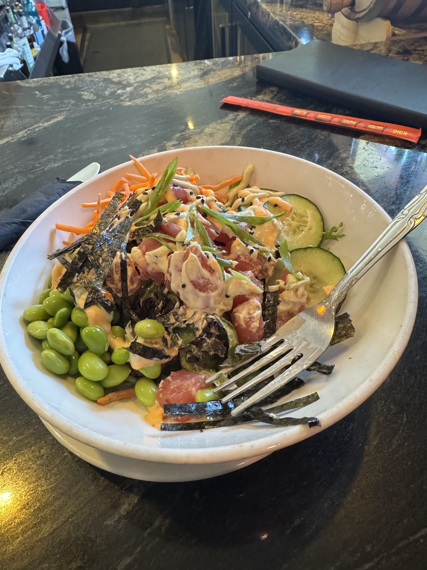 Read moreUpdate June 2025: Unfortunately, this years some of the summer menu ingredients have changed. Ahi Poke Bowl, in past years, was ALWAYS delicious. This year, spicy mayo ( Sriracha mayo) is NOT spicy. They ELIMINATED ALL of the following from the Ahi Poke Bowl: diced mango, thinly sliced radish, sliced water chestnuts, pickled ginger, pickled cabbage & pickled cucumber from the bowl this year. Unfortunately, the Ahi Poke Bowl is now very BLAND. We are very disappointed as this was our go-to for a Ahi Poke Bowl. June 2025, the online & printed menu description is NOT what arrives with your food/order. *Seaweed cut into thin strips covered 1/3 of our Ahi Poke Bowl, yet NOWHERE online or printed menu is that included in description. We are very disappointed in both flavor /ingredients change. Very surprised food did not match the menu's description. Perhaps there is a new chef?