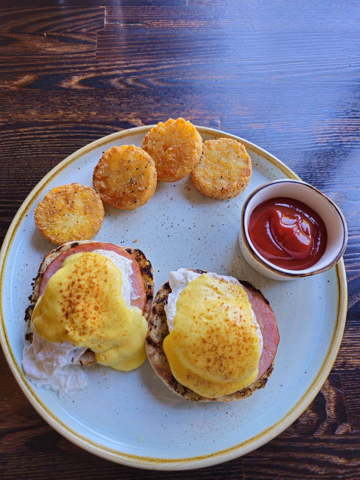 Jimmy's at the Landing offers a scenic setting for breakfast with a view. Here's my breakdown - Location and Ambiance: Parking was plentiful in the back, but be sure to park near the railing by the beach to avoid blocking the restaurant entrance and getting towed. The highlight of the restaurant is definitely the view. Both indoor and outdoor seating overlook the stunning mountains and Lake Tahoe. They even have a full bar right as you enter, with a bar seating area if you prefer. The indoor seating is cozy and inviting. Service: The service was excellent! Friendly and fast, which is always appreciated. Food: This is where Jimmy's fell a little short. The breakfast menu was quite limited in options. I opted for the eggs Benedict with hash browns. Unfortunately, they didn't have chai latte on the beverage menu, so I settled for water. The eggs Benedict itself was a bit of a letdown. The flavor wasn't quite right (it had a weird taste), and I could only manage to finish one of the two English muffins. On the bright side, the hash browns were crispy and light. Overall: Jimmy's at the Landing is a great spot for a scenic breakfast. The service is friendly, and the view is unbeatable. However, the limited breakfast menu and disappointing eggs Benedict brought the experience down a notch. If you're looking for a wider variety of breakfast options and a surefire delicious meal, you might consider exploring other restaurants in the area.