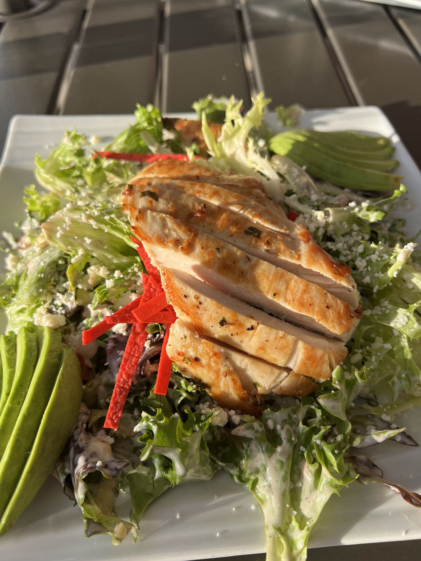 We started with the bruschetta and ahi tacos. The bruschetta came with barely a teaspoon of mozzarella and just two cherry tomato halves, on what was essentially warmed garlic bread. It was underwhelming to say the least. The ahi tacos weren’t any better, the only redeeming part was the pickled ginger served on the side.