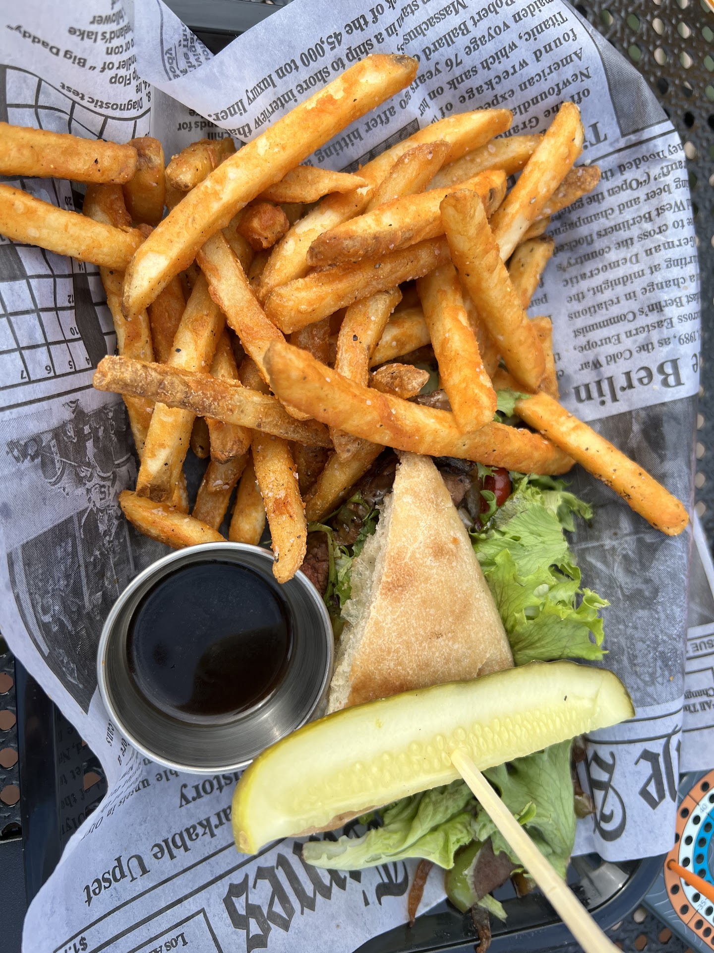 Server was just ok. Didn't request temps for anything, so it was a guess as to what we'd get. The Ribeye steak was like dry shoe leather on one end and a medium well on the other, unseasoned (though it was described as marinated) without even salt, smothered in a very acidic sauce; didn't finish it. The sides were decent. The BBQ burger was over/unevenly cooked for what was supposed to be wagyu beef and very plain tasting. The bun was good. The salad tasted like someone had sprayed perfume around it, didn't finish.