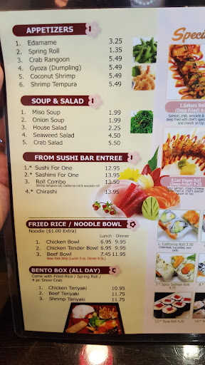 Read moreThis was my first visit to Sakura Sushi and I wasn't disappointed! I'm older, so maybe this explains the service I got, but I don't think so. I think that the staff are just very kind people! I ordered hot tea. It was very cold outside, and I immediately placed both hands on the warm cup. The next thing I knew, the sushi chef came back with a tall stainless steel container of hot water for me to place mmt hands around. Soon after, a hot bowl of soup appeared... and I didn't even order it! Now If that's not kind service, I don't know what is. I ordered the spider roll and two pieces of tuna nigiri. The roll was generous in size, appealing to the eye, and VERY FRESH. The nigari tuna were large in serving size, the tuna was fresh and it melted in my mouth. Delicious! I felt the pricing was very good for the service and food quality. It will be my go-to sushi restaurant...