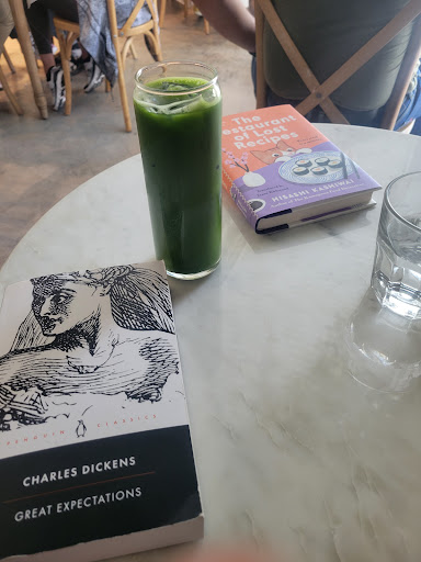 The food I had, the steak sandwich, was absolutely amazing. The combination of the mint, the tahini, the pickled onions, arugula, thinly sliced red cabbage, and savory meat was mindblowing, and the baguette was really crunchy! Lots of textures to get into. I will say that it can be a little tricky if you have a smaller mouth đ but it was definitely something I would get again. It doesnt come with anything, but you can get a side of salad, and to be honest, the sandwich is a pretty balanced, generous option, even without the salad. I also had the iced coconut water matcha, which came in a beautifully delicate glass; its quite strong and not sweetened, so its perfect if you're looking for a true matcha hit that's got a light coconut flavor, but the server did mention that many people find it a bit difficult and need some syrup. However, I think its nice as is, and would probably be a great drink to pair with their sweet desserts or breakfast options. I also had the pecan pie latte, one of the seasonal specials; lots of great milk foam and not too sweet.