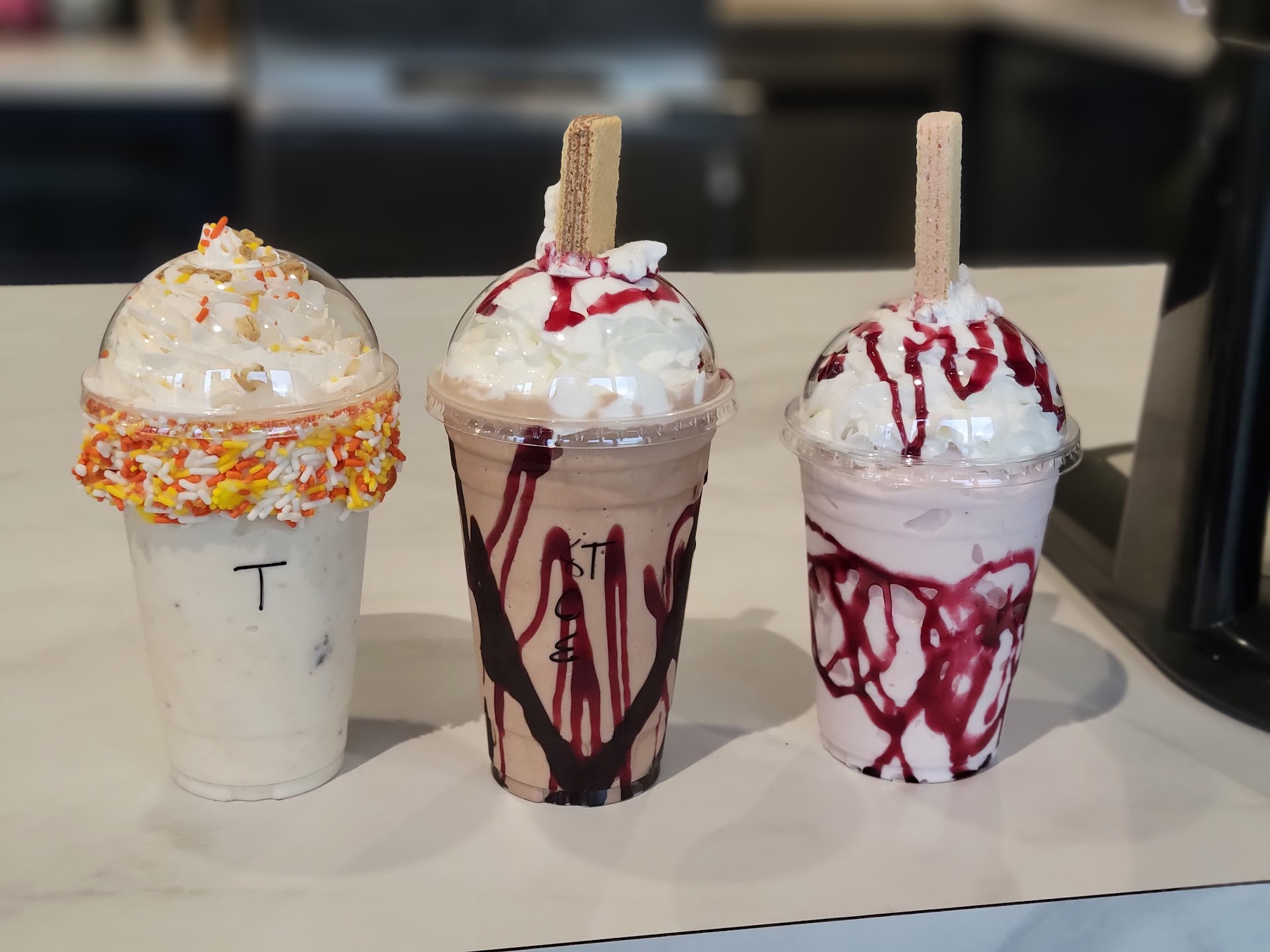 Read morenot impressed. Figured our family would try this place out....once and done. The kids liked their chocolate shakes (no shocker there). Husband tried the shake of the month, he said it was okay, till he got to the part where mini marshmallows were in the shake. I hated mine. I tried the salted caramel pretzel, it was too sweet and I was definitely not expecting chunks and bits of soggy pretzel. I thought it was a topping, it's not. So trying to drink it as a milkshake is a no, you will be chewing on pretzel bits. My sister liked her espresso shake. I tired it, too sweet and I am not much of a coffee/espresso person so I can't dock that. Oh and their whip topping is weird really thick and no flavor, again I was expecting light and airing I was wrong. Most likely won't be coming...