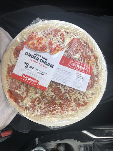 Read moreI love Papa Murphy’s pizza, but this location was rough. I ordered online and my order was supposed to be ready by 5 o’clock. At most other locations my order had been ready a little early in most cases. In this case I walked in at 5 o’clock and they had me check two different places for my order and it wasn’t there and they said hold on. I watched walk in orders get their pizza before me and wait almost 20 minutes for them to finish my order. They gave me no time updated and didn’t seem to be in any hurry even though they were obviously busy. There were probably 7 people working but there was only one who could run the register. The 20 minutes I waited I watched two employees look lost while this poor girl running the register was told to ring people up, pick up the phone, and wrap the pizzas. She looked so overwhelmed and things were obviously running horribly behind. The way the employee was treated was not right and my sloppy pizzas with sauce everywhere were dumped on the counter with no explanation or apology as to why they took 20 minutes longer...