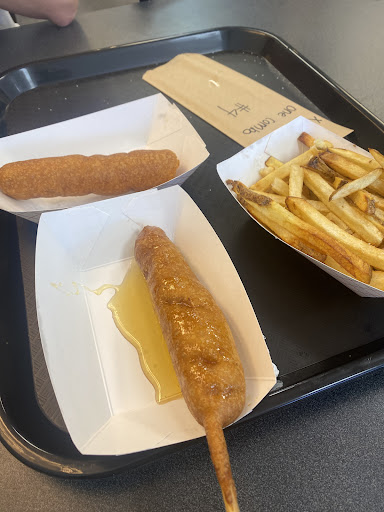 Read moreCorndogs taste great! I would prefer a turkey option (not big on the 100% beef taste) but the batter is the best I've had! Fried pickle was a taste we didn't expect but it was yummy! For fried cheese we tried Babybel & Cheddar... cheddar his line a grilled cheese! So yum! The babybels were pretty good & perfect for a 3 bite side! I suggest getting everything K style because that is...