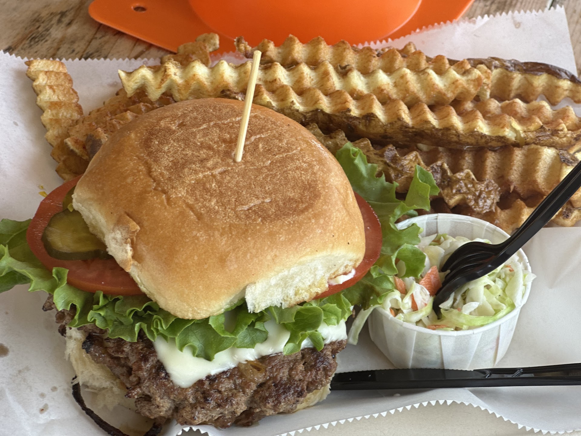 Something happened in the kitchen because they made an announcement to everyone in line that food would take 45-60 minutes. I had already ordered mine, so I thought I was in the clear, but no. At least we had fun talking to other customers and had a good time. The atmosphere there is relaxed and friendly, but I was unhappy with the choice of rap music near...