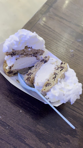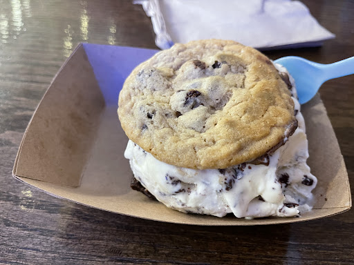 Read moreSweeet! Choose your favorite cookie(s) and a large portion of your favorite ice cream in between! Mixing and matching several flavors did not seem to be a problem and was encouraged. Add toppings for a truly decadent treat. The cookies were made fresh, soft, and delicious, and are warmed-up if you so desire. They cut the whole thing nicely in half for sharing. The sandwich was easy to eat by hand, or with a spoon while in the cardboard serving boat. One was enough to share by two and cost around $8.50. The place was extremely clean and comfortable. The ice cream can also be served atop a brownie or chocolate chip cookie bed. And both the ice creams and cookies are all specially made for this establishment. The staff was very friendly and helpful in explaining the choices — very accommodating. Nice cozy shaded patio deck out front. Easy to find, just off South Padre Blvd. A great dessert experience not to...