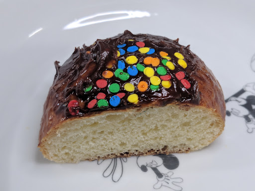 Bolitas de Dulce (chocolate) was one of my least favorites. Nothing so bad I didn't finish it though. It's pretty much chocolate icing (w/ sprinkles) on top of a sweet bun. The bun itself was a subtle sweetness which was nice because the icing is very sweet. The chocolate icing really does taste like the Sara lee or Pillsburry one you pick up in grocery aisles. So if you like that flavor you'll enjoy this.