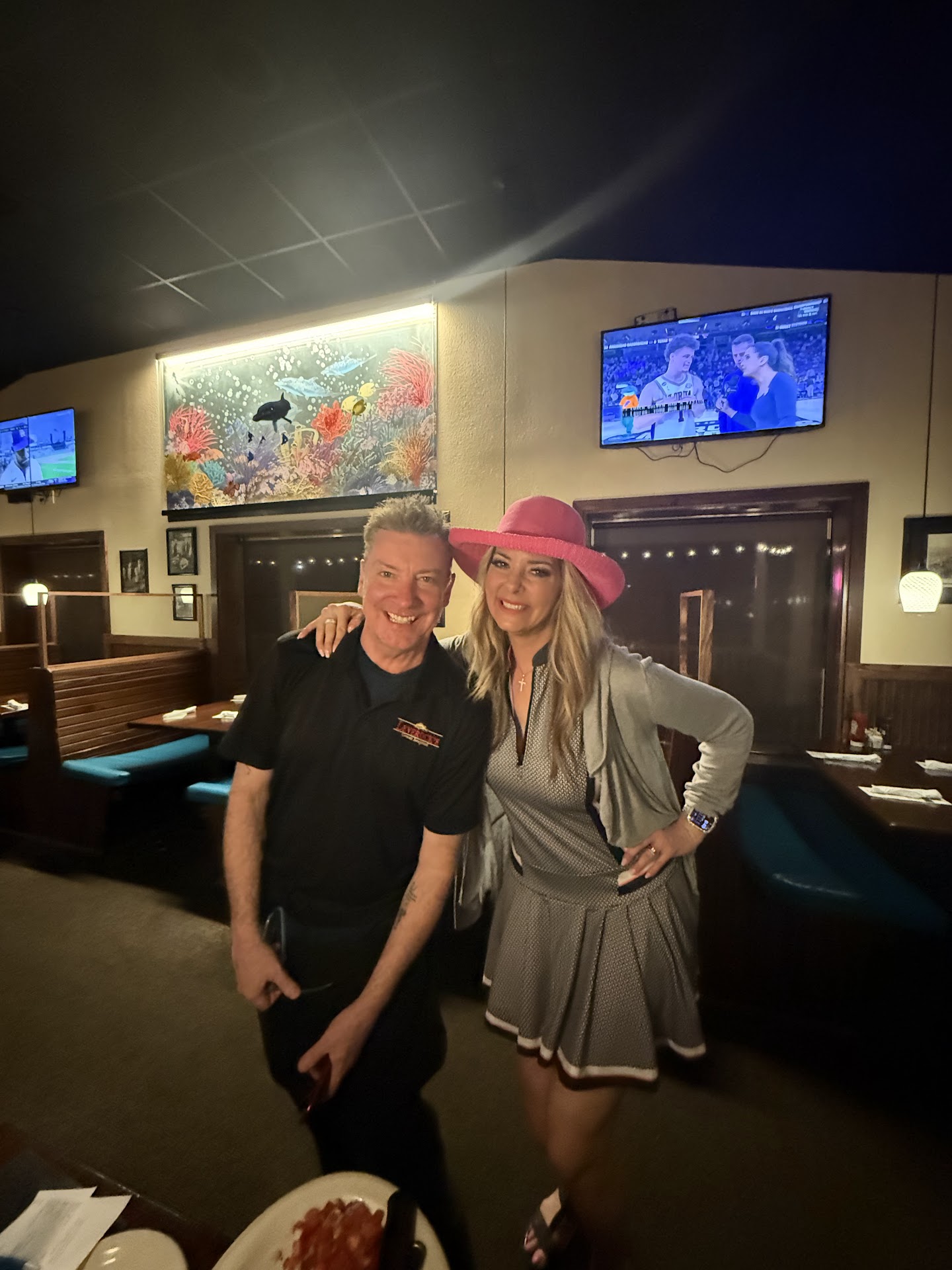 Read moreI'll put this nicely without saying the F-word. It's our 18th wedding anniversary and we started with a great cup of HOT coffee a pleasant and courteous waiter Alex, who kindly took a couple of pictures of my husband and I. We then ordered a couple of appetizers, escargot an stuffed mushrooms. Unfortunately we had to send the mushrooms back because they were COLD. THE APPS WERE GOOD. Then dinner came which was The San Francisco Platter and the Sword fish/ Side Crab Legs. Guess What? COLD, COLD, COLD. I didn't have the heart to tell my husband that I was disappointed and very dissatisfied. I'm so looking forward to dessert. We both order Cheesecake w/blueberries. Can't wait. Alex came back to the table 2 minutes later, GUESS WHAT¿? Cheesecake is too frozen to eat!!!! Now I've had it, I'M DONE!!! My husband paid the check and took very good care of Alex. Me? Well I went into the kitchen to let the "chef" know how I felt. First of all he had NO Chef jacket on. Cut off blue-jean greasy shorts and black T-shirt, hair all a mess (no hat) and a beard w/2 braids on each side and beads on the ends. He couldn't have been any older than 25. I also didn't see any kind of hair or beard net which I BELIEVE IS REQUIRED BY LAW!!! Anyway, I told the Chef nicely, YES NICELY, exactly how I felt and honestly he couldn't have cared less. We traveled 3 hours total on this Special Day and Unfortunately our experience did not meet our expectations and was a total disappointment. I HOPE UPPER MANAGEMENT READS THIS, TAKES APPROPRIATE ACTION BECAUSE TONIGHT'S MANAGER HAS ALLOWED YOUR RESERAUNTS STANDARDS FALL...