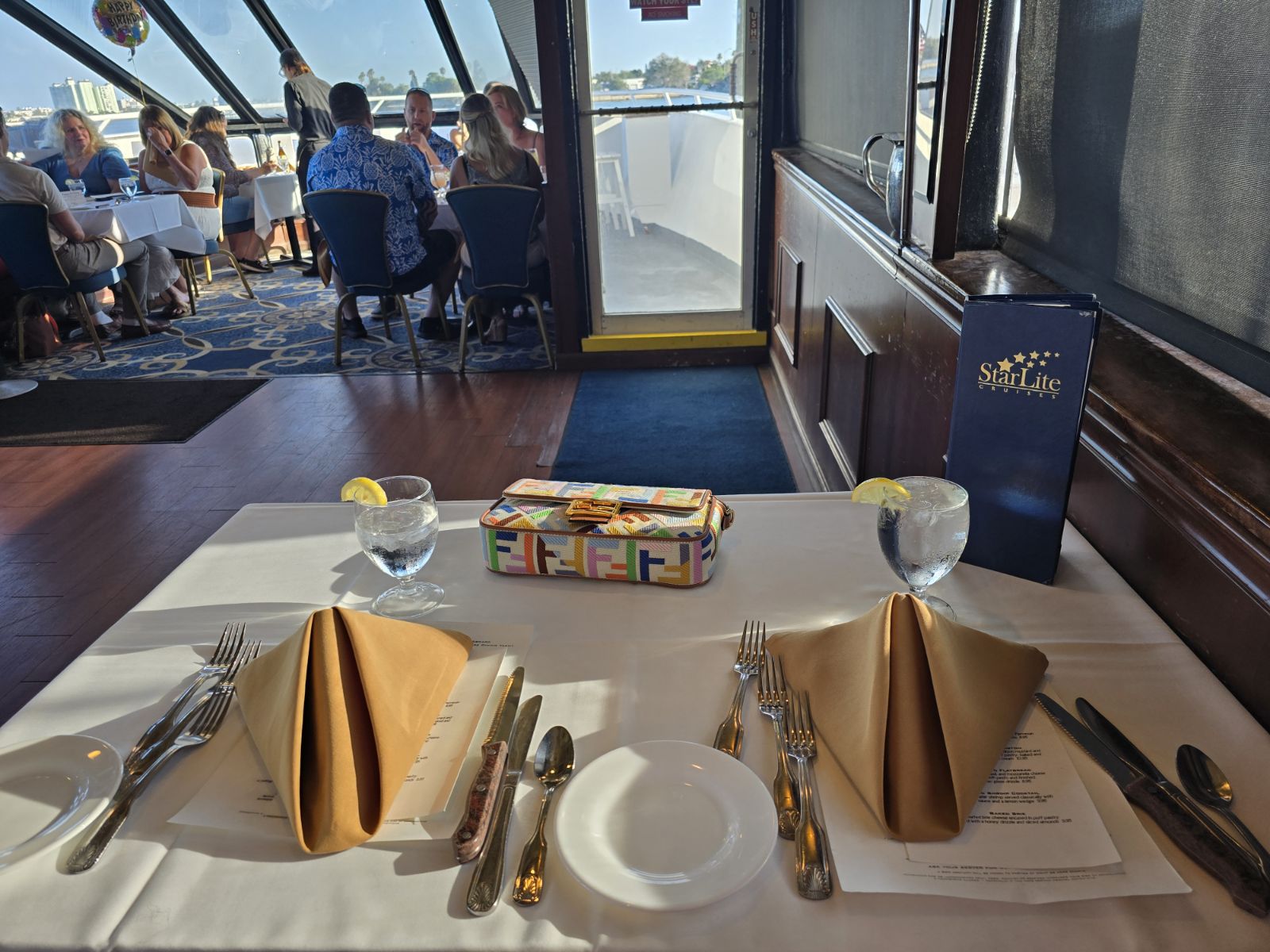 If you are in the St.Pete Clearwater area the StarLite Sapphire is a MUST! We had the most wonderful evening everyone and everything was perfect. First off it is a new yacht (we went December 8/24) it’s beautifully decorated and spotless including the restrooms. We had a window table at the front on the main floor right next to the dance floor. We were immediately greeted by the nicest woman “Stephanie “ such a welcoming bubbly personality. The rare type of person who makes you feel like you are the most important person there. Of course she spoke to everyone like this, she’s just lovely. We thought she was the DJ but no we soon had the most wonderful surprise when the music started. Stephanie is the Singer and has the most beautiful voice that matches her personality. She has a wonderful repertoire of songs from the 1950’s on up. We told her a story about our wedding and how my husband is my special angel he really is and we started our wedding dance with Bobby Vinton’s 1957 hit “You Are My Special Angel “. At the end of the evening she surprised us with “You Are My Special Angel “and it was wonderful we hadn’t danced to it since our wedding 12 years ago. We are young seniors but fairly newlyweds. The music was so great we danced most of the evening. Our waitress was “Lauren” a really nice young lady and great server. They have an amazing menu and everything is cooked fresh onboard by Chef Tim an outstanding chef. The yacht holds 150 guests and he does an amazing job and special requests. It’s an extensive menu for a dinner cruise even a Vegan dish. Salmon, Red Snapper,Chateaubriand, RibeyePork steak, Shrimp I don’t recall everything however there is something there to please everyone. I have a rare disease and must have nonfat/low fat no sugar diet. I had the Red Snapper with red&green peppers atop, green beans steamed to perfection and yummy rice. It’s a 3 course meal that starts with a delicious salad of mixed greens, mandarin oranges, raisins, seeds, parmesan cheese served with a raspberry vinaigrette dressing. Chef removed the parmesan cheese for me he’s an excellent cook but above all very accommodating . We spoke to him really nice fellow and he told us he will cook any request he can with the ingredients onboard and he has a lot. After the salad & delicious fresh bread with olive oil and balsamic vinegar for dipping everyone chooses their own entree and dessert of the day completes the dinner. They also have appetizers that are extra but a nice variety and so reasonably priced. I had a shrimp cocktail the 6 shrimps were huge and I loved the tangy cocktail sauce you can tell that it is freshly made it didn’t come out of a jar. My husband had a delicious baked brie encrusted in a nice light flaky pastry and I believe the side sauce is apple but not certain. I just know it was fabulous once again to perfection. He really is an amazing chef to cook for so many people from scratch and serve right on time at 7:30. My husband had the Land and Sea which was chateaubriand that melts in your mouth served with shrimp. It was also served with tasty rice and green beans. We enjoyed dinner immensely dessert was cheese cake w/caramel sauce& oreo cookie crumbs atop. I can’t have sugar so my husband had 2 slices and said it was marvellous. It was truly the best meal we had during our entire month in the area. We ate at some very nice restaurants along the beach and this was by far the very best. I’m so impressed that Chef was so accommodating to my special diet. Oh the appetizers were just $9.95 And Lauren our server had her timing down pat, excellent server. Not overbearing but there when you needed her. She was working the upper level dining room where the full bar is located and had us and another table on the main floor and yet an excellent job.The bar menu is quite extensive with a very good selection of wines and cocktails.Views are wonderful great for special occasions there were several birthdays & anniversaries. People of all ages 6-92. It’s just a fantastic experience we enjoyed our evening so &...