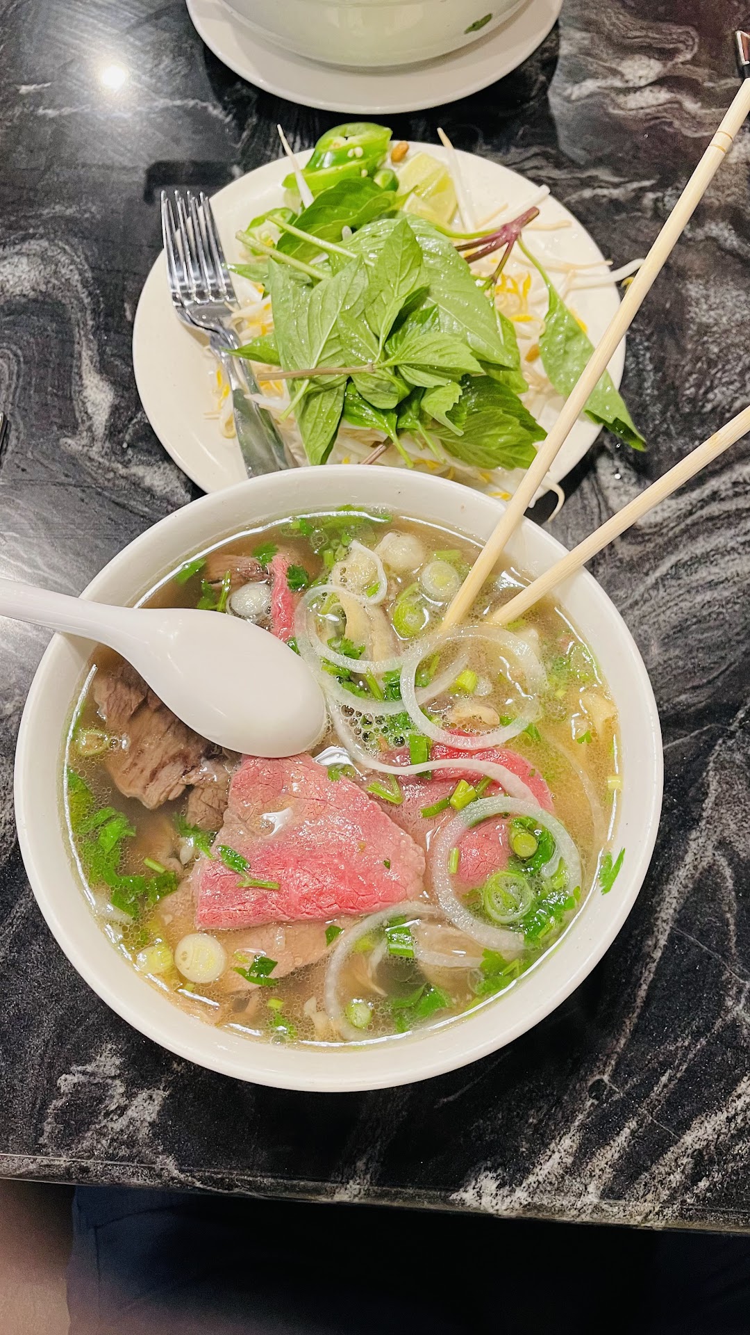 I would not come back to such a place for the most important reason, the Pho broth felt diluted and under seasoned. This huge restaurant is like a giant cafeteria with servers who quickly pick up the premade/assembled foods. Though you are served fast, itâs unfortunate, however, that the food just has a conventional feel. One goes for pho because they know how much time a good beef broth takes to make at home. This broth could have been made at home using beef bouillon and some vegetable stock (and probably better I may add).
