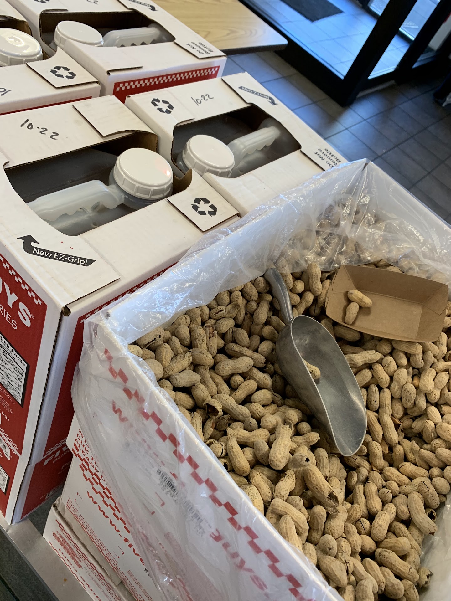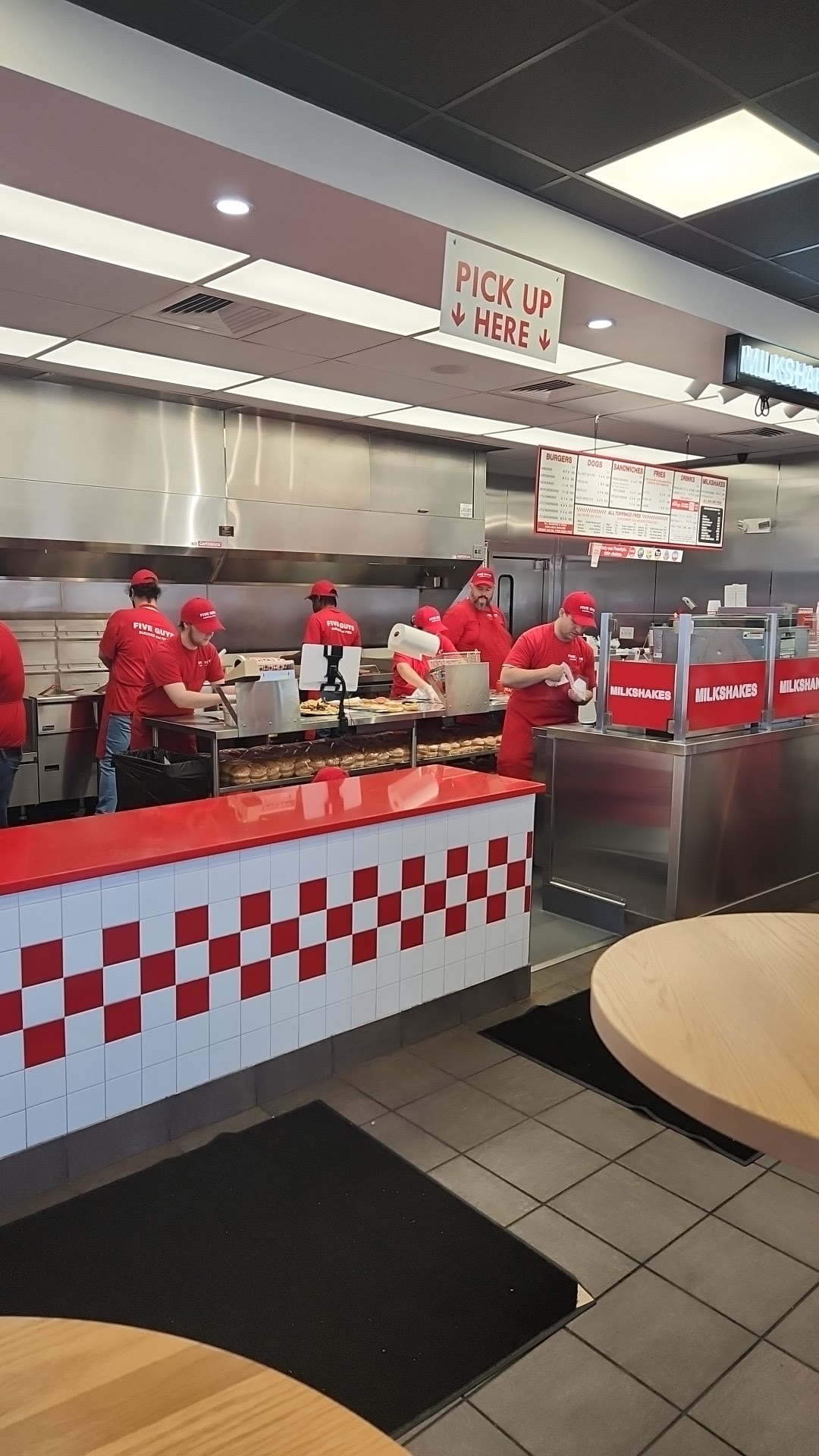 Read moreSoundgarden blasting so loud the speakers were distorted. People including small kids many upset and unable to communicate. Way too loud!!! When I asked large blonde lady behind counter to turn down she rolled her eyes at me and did nothing! I left and went to outdoor table to try and eat. Music was so loud people were moving the tables away from the ceiling speakers. Totally inappropriate! Every part of this food order was off. Shake- disgusting over chocolate….black. Fries- they gave me seasoned not regular as ordered( busy answering the phone), burnt and gross. Burger…. Okay Every table in the restaurant was very dirty and covered in food debris. After waiting in line, I was standing at the register placing my order , my wife and son had already ordered and the guy answers the phone…. While I am telling him my order!!! FAIL. That’s how I got the wrong fries!! Focus people! 5 Guys- time to regroup. Get some leadership in this store or prepare to close. Not...