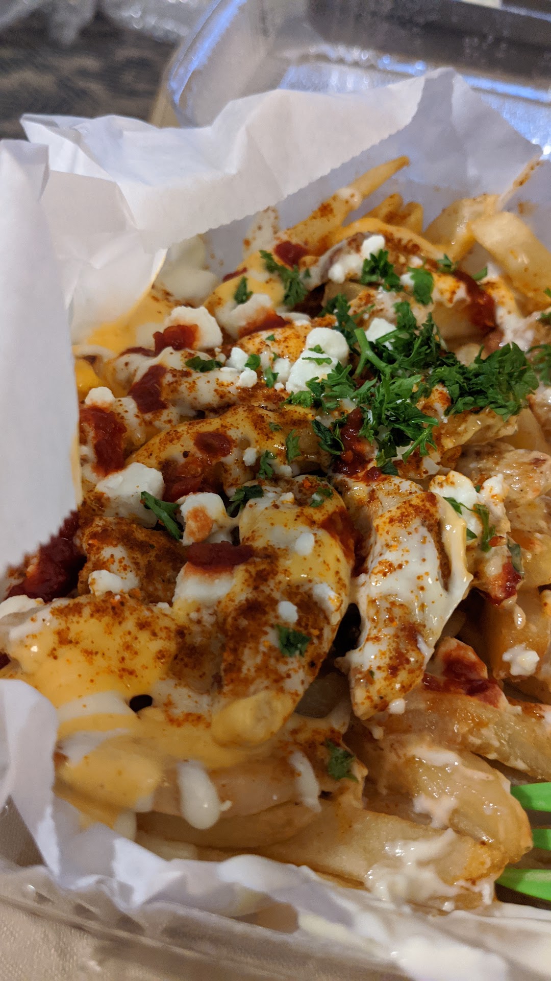 Seriously, order takeout from here and you will not regret it. The food is priced extremely reasonably. The fattoush salad is slightly larger than a typical side salad and is served with fried pita. It is refreshing and delicious. The gyro schwarma was very good as well. We topped it with what the owner suggested with the addition of the harissa sauce. The harissa sauce has nice heat but isn't hot. The falafel was nice and crispy on the outside but not dry on the inside. Definitely get the signature rice to go with it. This highly fragrant rice is seasoned with (I am guessing here) cinnamon, cardamom and maybe a little turmeric? However, my absolute favorite item was was the LOADED SCHWARMA FRIES!!! Where have these been all of my life? Why bother with other fries when schwarma fries exist?