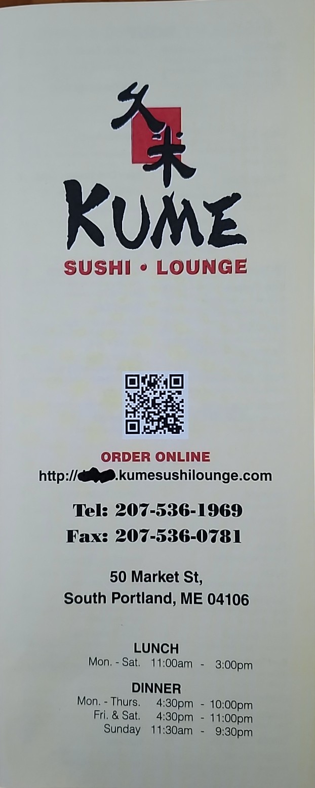 Read moreWe were celebrating a birthday last night and decided to try Kume for the first time. When we first entered we immediately felt very comfortable with Kume's laid back modern Japanese decor, plenty of space between tables, different types of dining spaces (sushi bar, tables, booths, and teppenyaki grill), and extremely welcoming friendly faces from all the staff. Our server was Jimmy, and he was perfect. We had some older family members and he cared for them fully, gently, patiently, and he gave our birthday guest lots of attention. He had support wait staff who were similarly excellent who he utilized very effectively and with grace. I would always like to be served in a restaurant by someone exactly like Jimmy. The menu has a lot of different choices including many raws and cooked. You can take both sushi and non sushi eaters here and everyone finds plenty of choices. We ate our way across the menu from beginning to end, and literally every single thing was spectacular. The tables are sized appropriately for multiple courses and also sharing, so there is plenty of room for everything, making everyone fully comfortable during the entire meal. I was shocked and delighted how excellent the nigiri was. The Itamae were EXTREMELY skilled, comparable to what you find in established Japanese sushi houses in the biggest cities and Japan, and the fish quality was amazing. We had no problem getting a table for six on Friday night, but we were eating quite early, so IDK how crowded such a standout excellent place in a smaller market may get later in the evening. This is the best restaurant I have eaten at in the Portland/SoPo/Cape Elizabeth area, and we will be back again soon. TY Jimmy, Itamae, and the rest of the Kume staff for the best dinner out that we have had in...