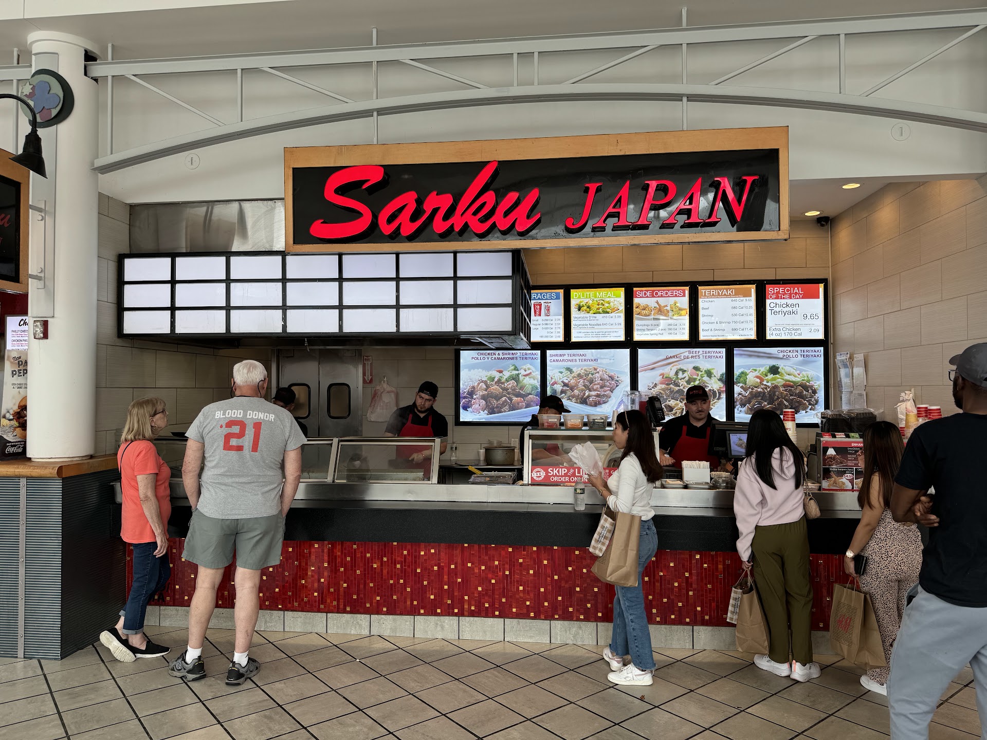 Sarku Japan is my favorite Maine Mall food court option. Even though it's mall food, they have great sushi. I have eaten it dozens of times and have yet to be disappointed with the quality of the food. Sometimes the wait is a little extreme, but once you get the food it is worth it! If you're in a hurry or on your lunch break or something- ask the wait time before you place your order and pay. Theres been times when I've waited over 20 minutes, Yesterday though, for example, I ordered a spicy California roll and a sweet potato roll at around supper time and waited about 5 minutes. My three favorite rolls are the spicy California, sweet potato roll, and the chicken teriyaki roll- with those you can't go wrong. They are delicious and pretty impossible to mess up. The price is great- about $3-4 per roll and great for sharing...